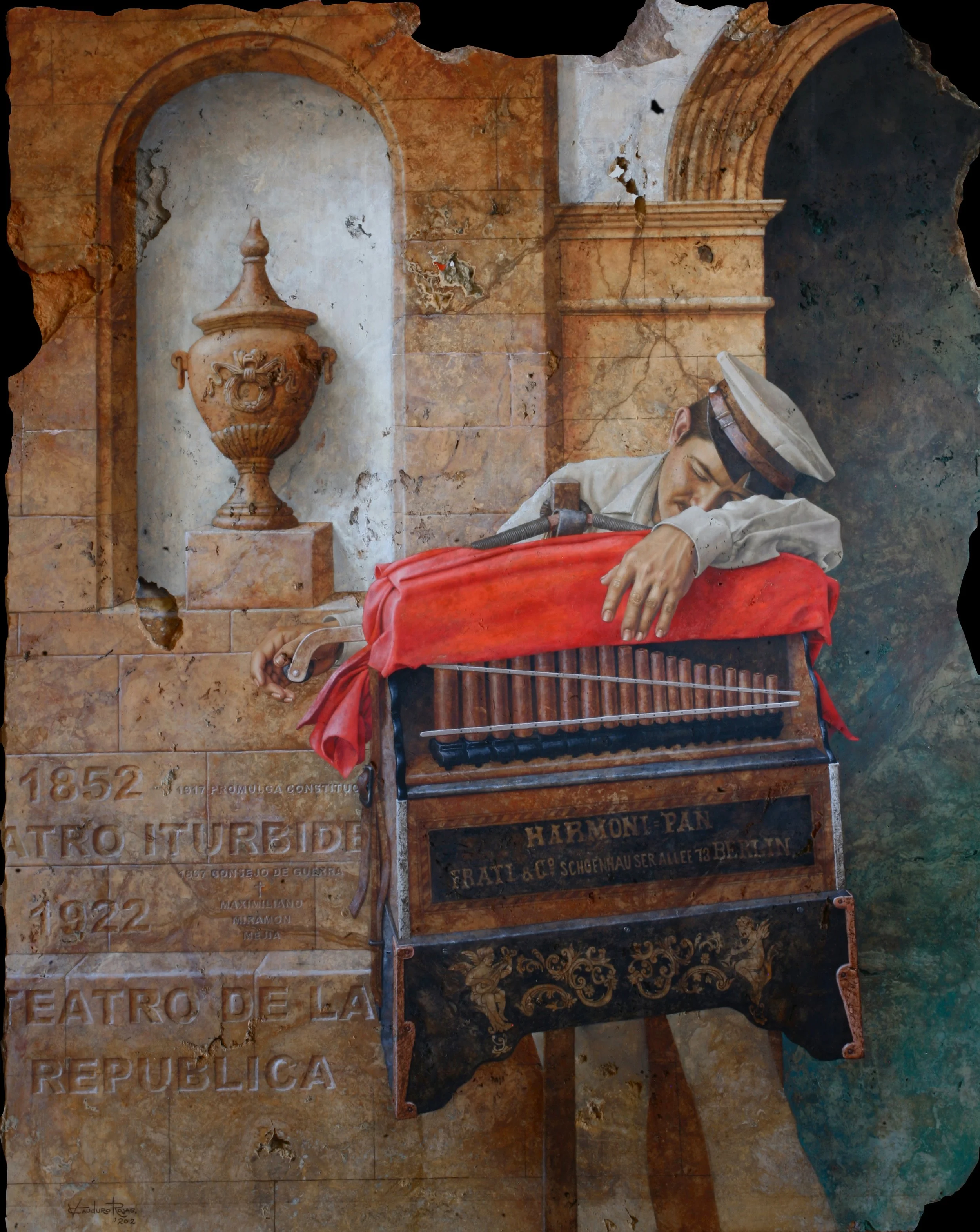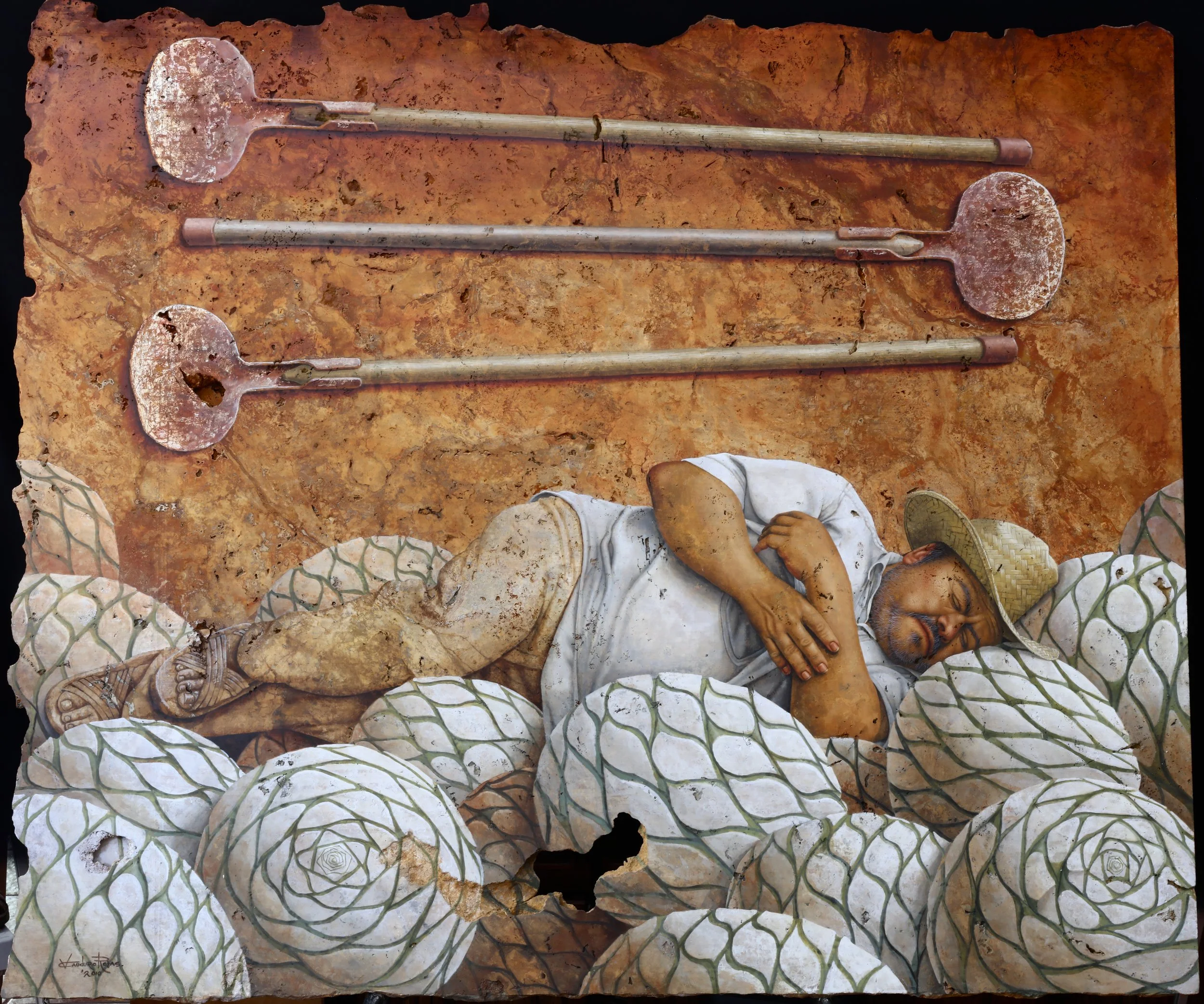 Óleo sobre travertino. 150 x 280 cm. 2021