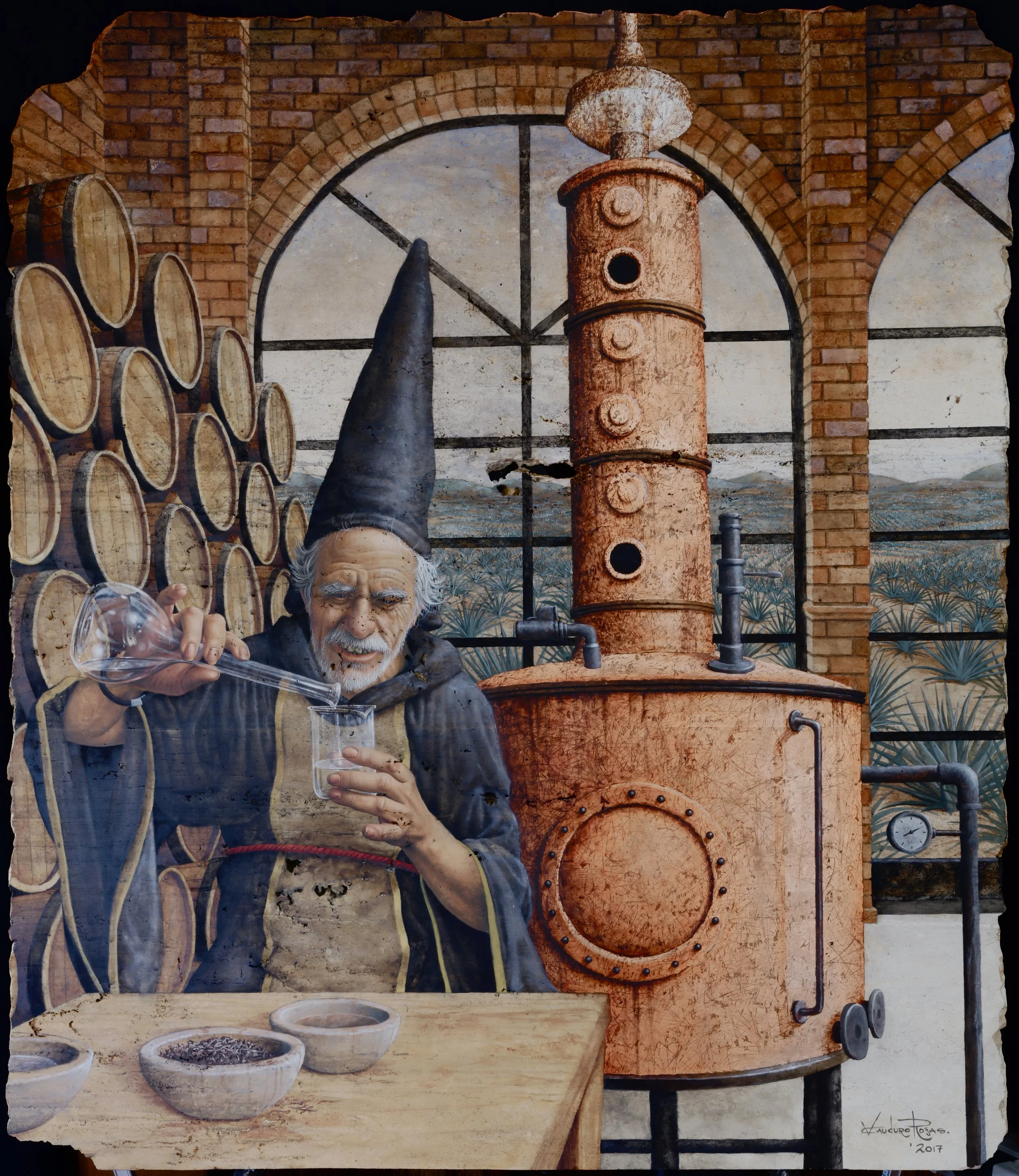Óleo sobre travertino beige. 152 x 261 cm. 2016